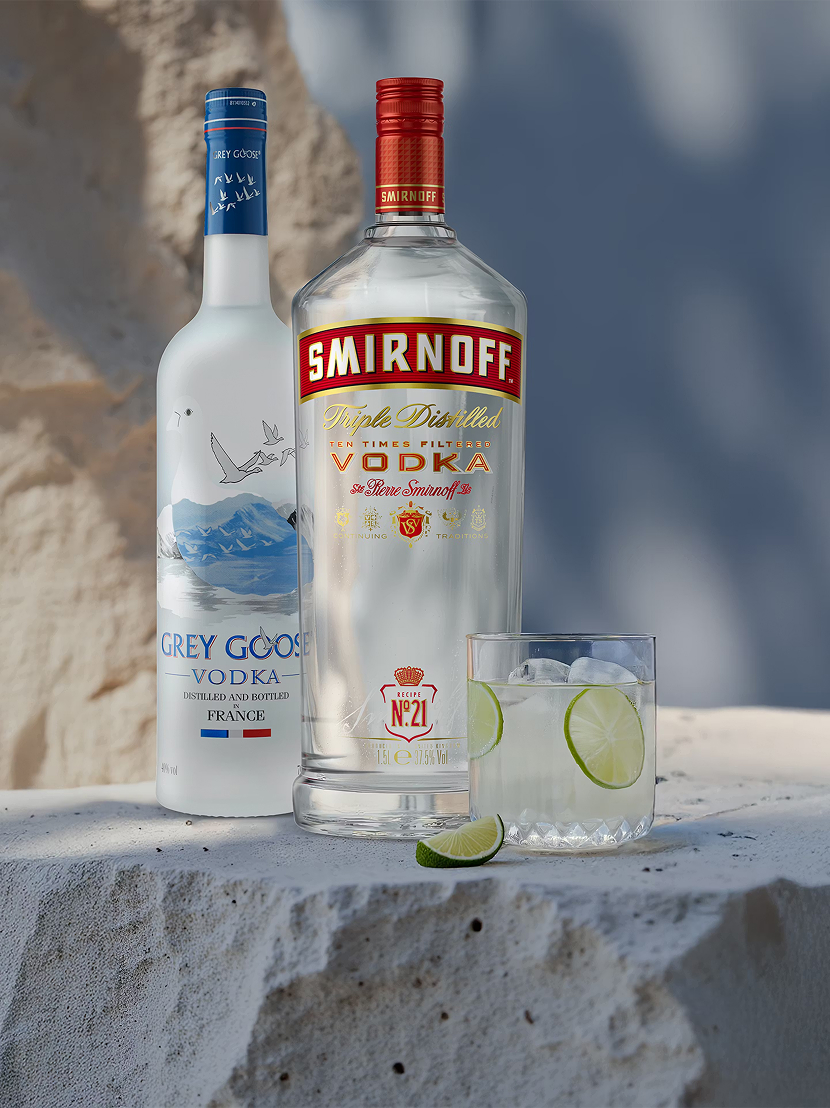 De kracht zit in de details. De AI-workflow voegt moeiteloos verschillende flessen samen tot één overtuigend sfeerbeeld, waarbij alles klopt: van de reflecties in het glas tot de textuur.